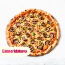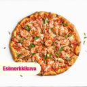 Kaikkiin pizzoihin kuuluu tomaattikastike ja juusto.